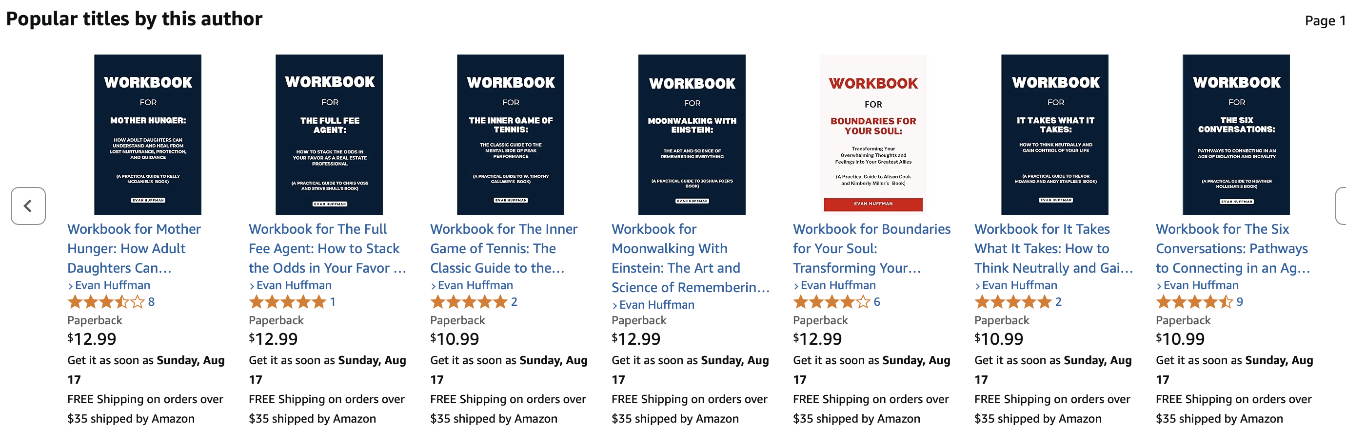 I looked at Baker Publishing's website for some titles of all-time best sellers and new releases. Based on searches for those titles, I found that in mid/late August there were also spoof “workbooks" on Amazon for: