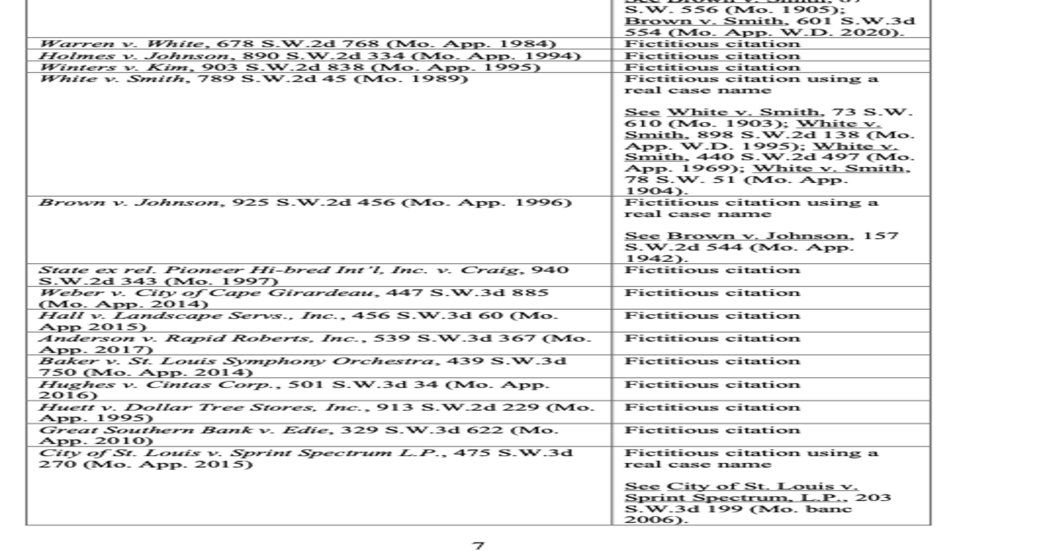 I wrote about the 2024 Missouri Court of Appeals Kruse v. Karlen, which involved a pro se Appellant citing 24 cases total: 22 nonexistent cases and 2 cases that did not stand for the proposition for which they were cited.
