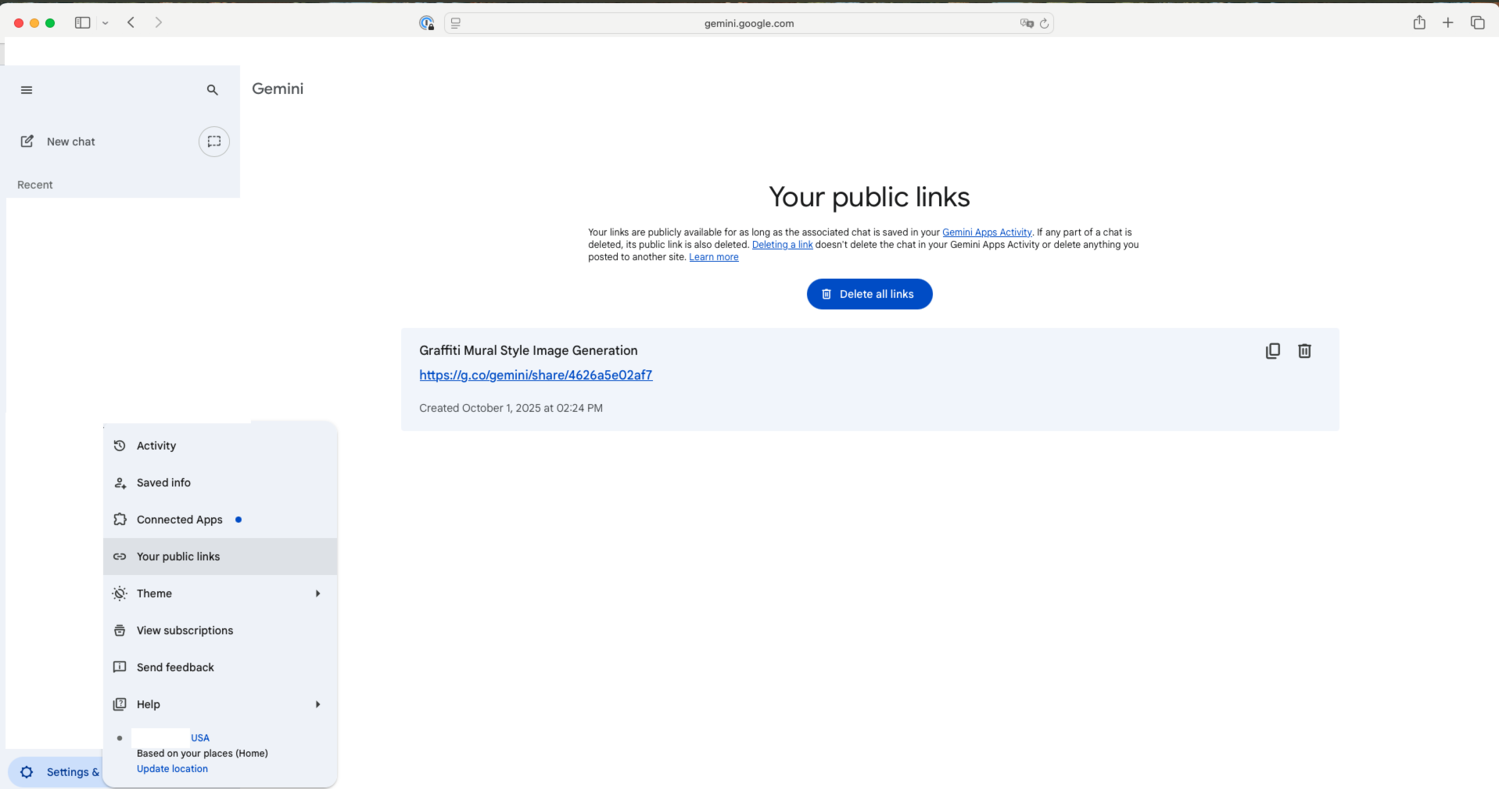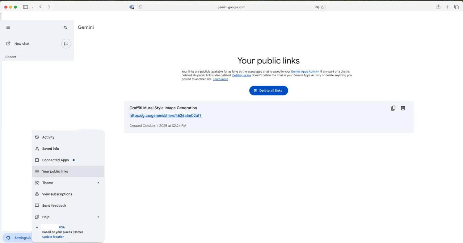 Screenshot of Google Gemini “Your public links.”