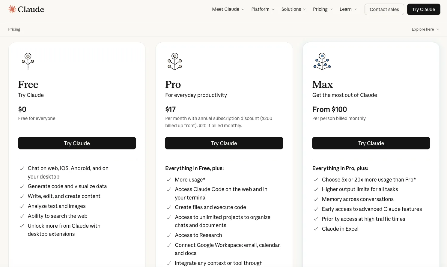 - $100/month for more Claude Code usage and access to Claude Cowork (Cowork is MacOS only for now).