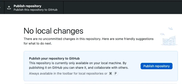 Click either "Publish Repository" button to sync your folder to your GitHub account as a repo.